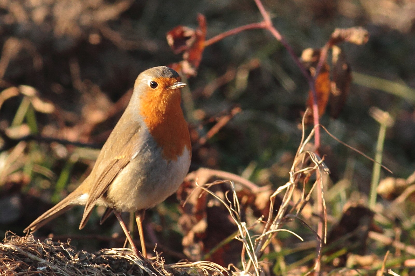 In una gelida giornata alla Palude Brabbia (Varese) Pettirosso ripreso tra le calde luci del tramonto